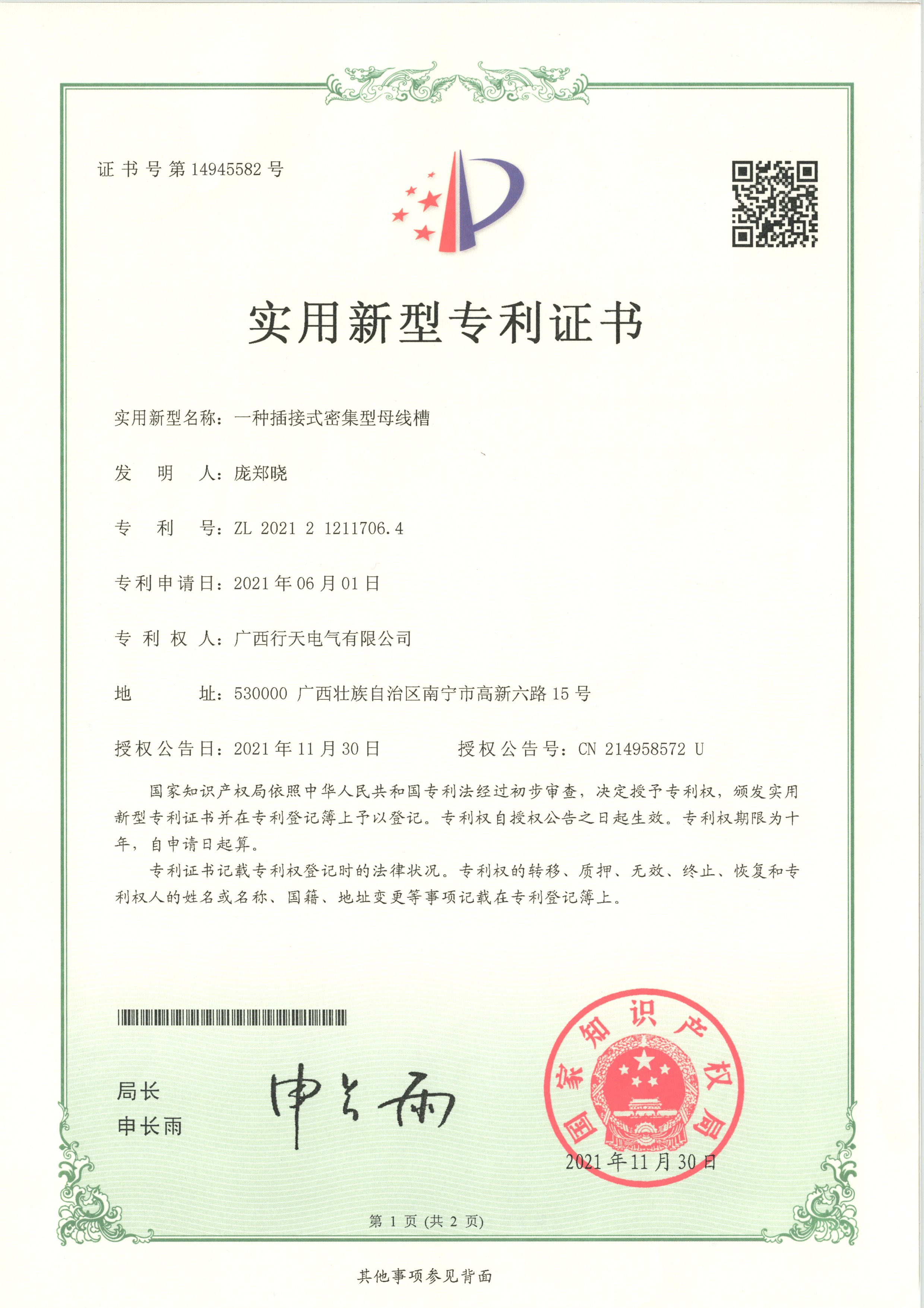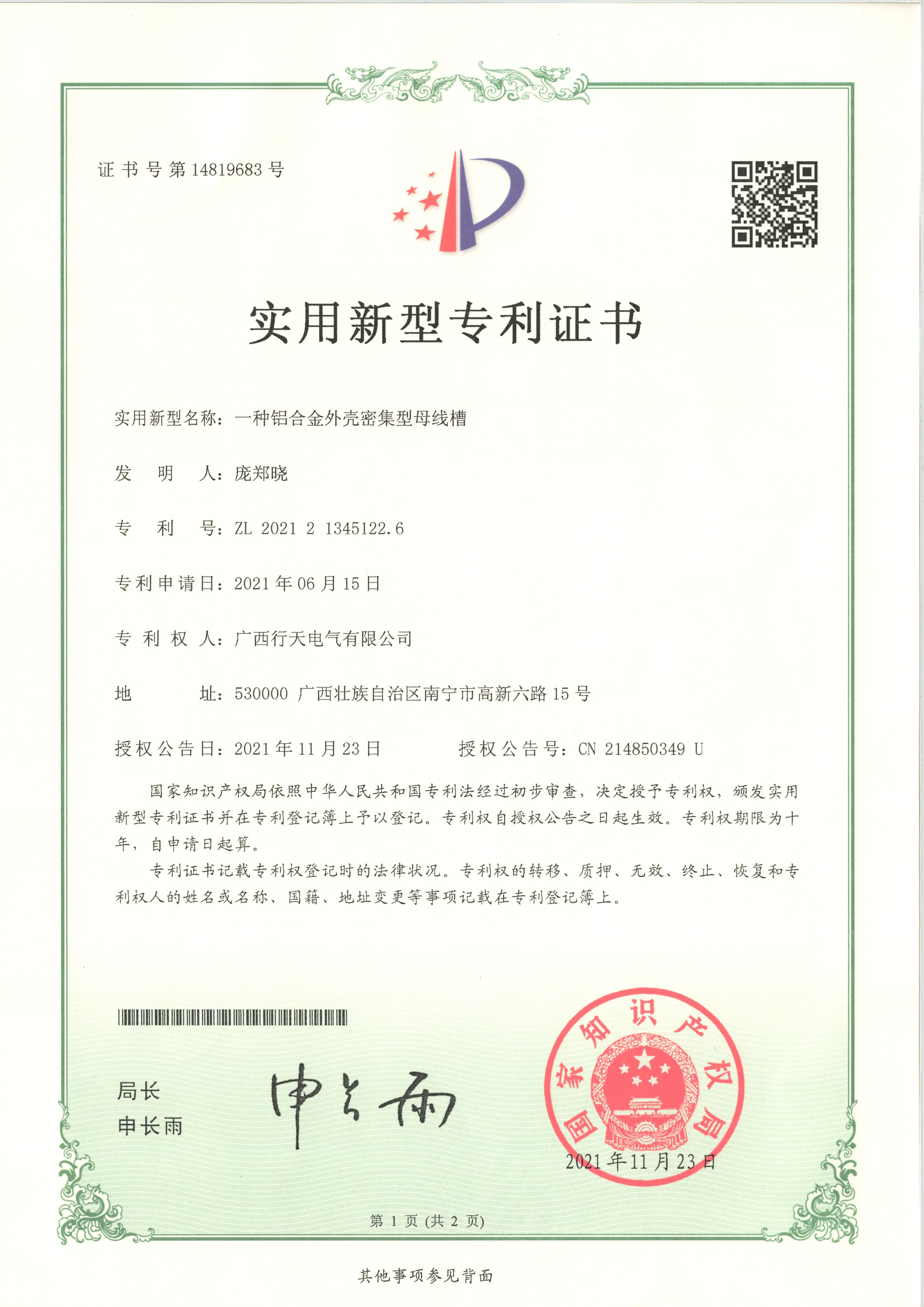 实用新型专利证书